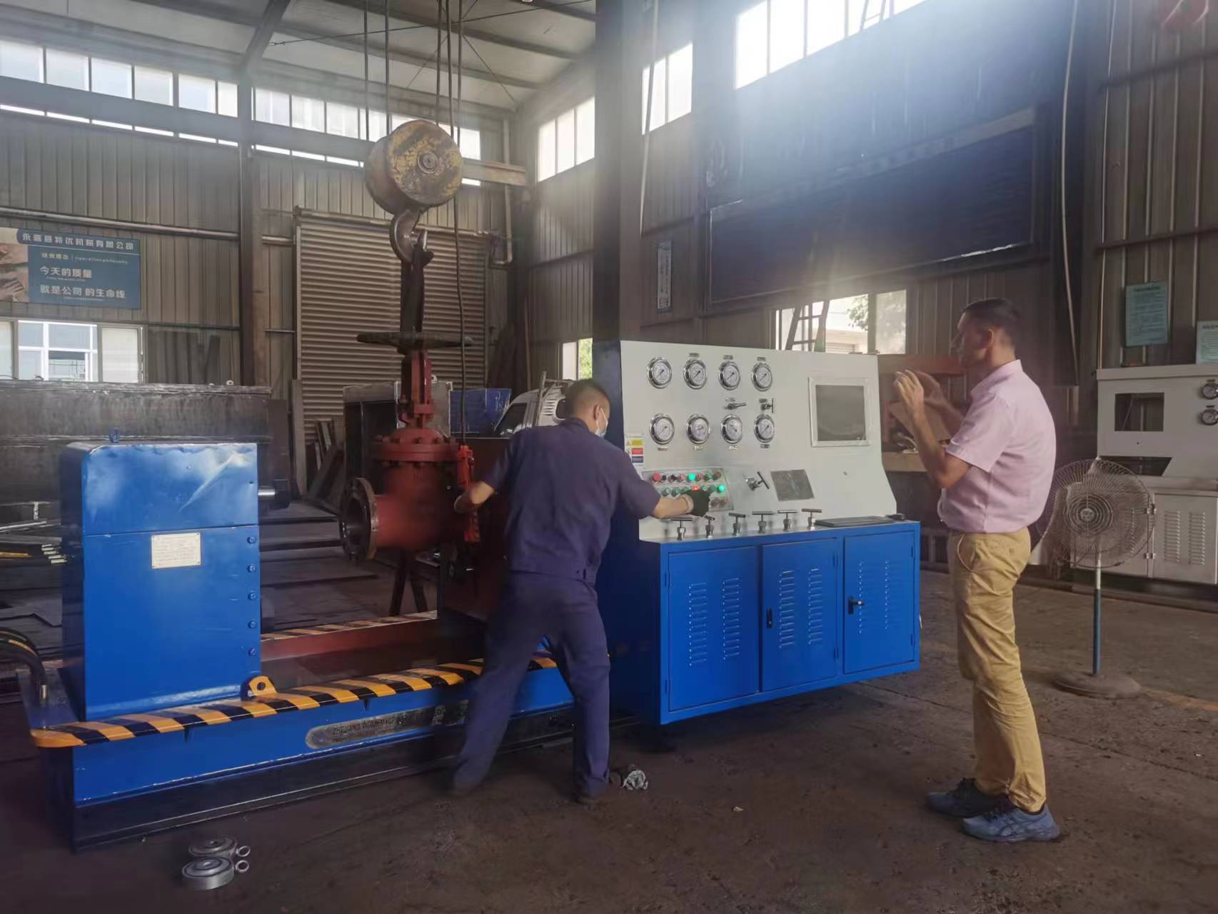 該機(jī)全過程由液壓傳動(dòng),電器控制,對(duì)被試閥門無(wú)任何附加影響試驗(yàn)結(jié)果的外力。提高工作效率和減輕勞動(dòng)強(qiáng)度,本設(shè)備廣泛用于閥門制造業(yè)和石油、石化、核電、化工等使用、閥門維修部門等單位的一種先進(jìn)理想的閥門試驗(yàn)檢測(cè)設(shè)備、閥門維修試驗(yàn)設(shè)備。